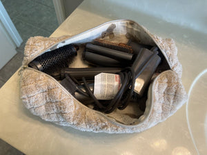 Our Savanna Hair Tool Bag is a stylish and protective sleeve designed to hold your hair tools with a classic look.